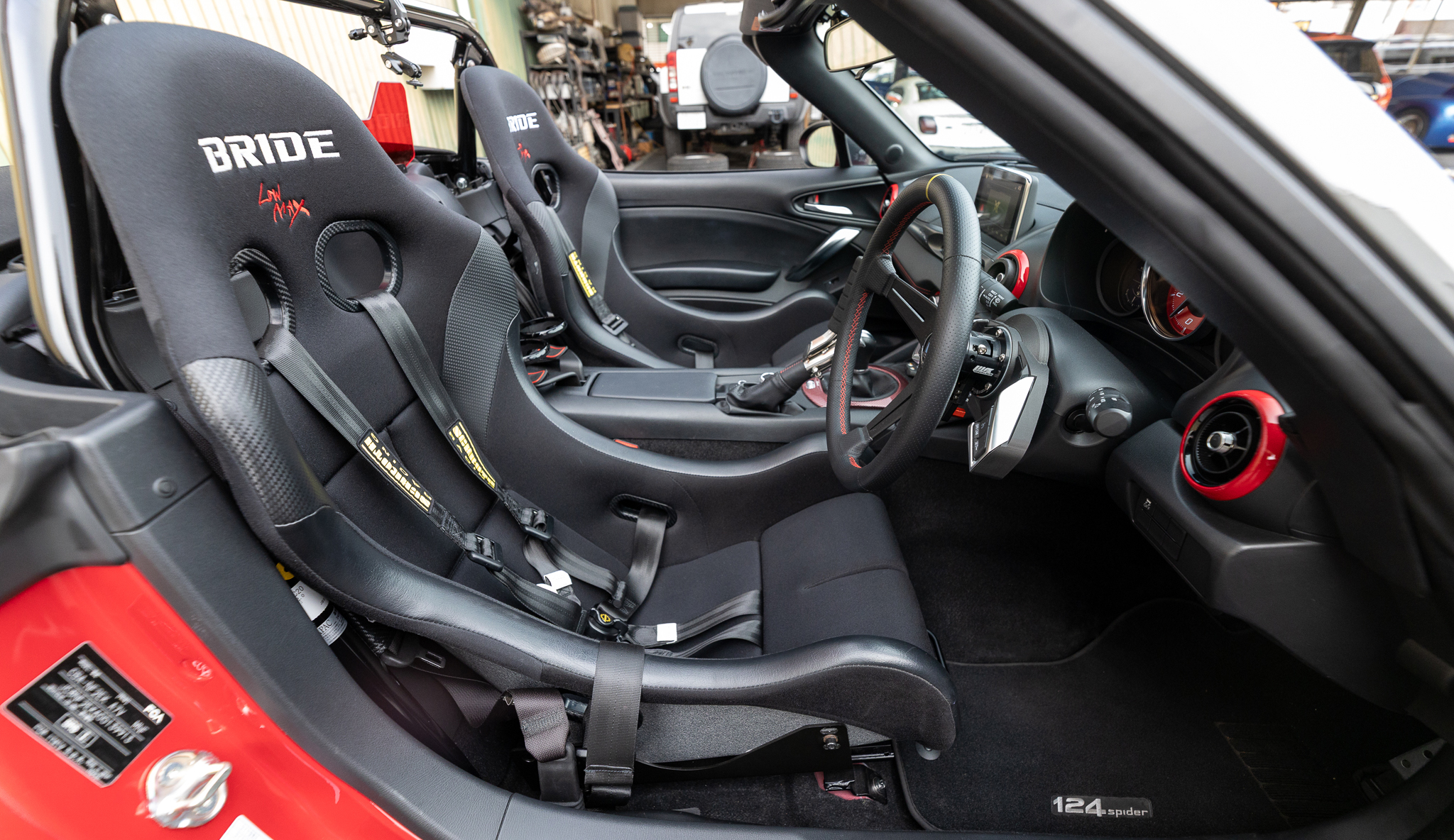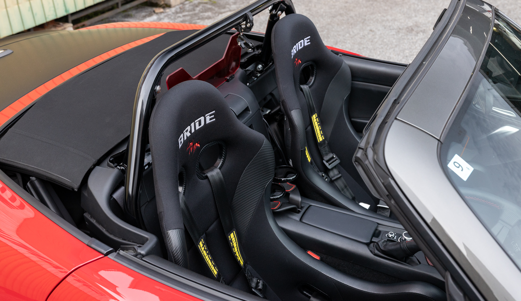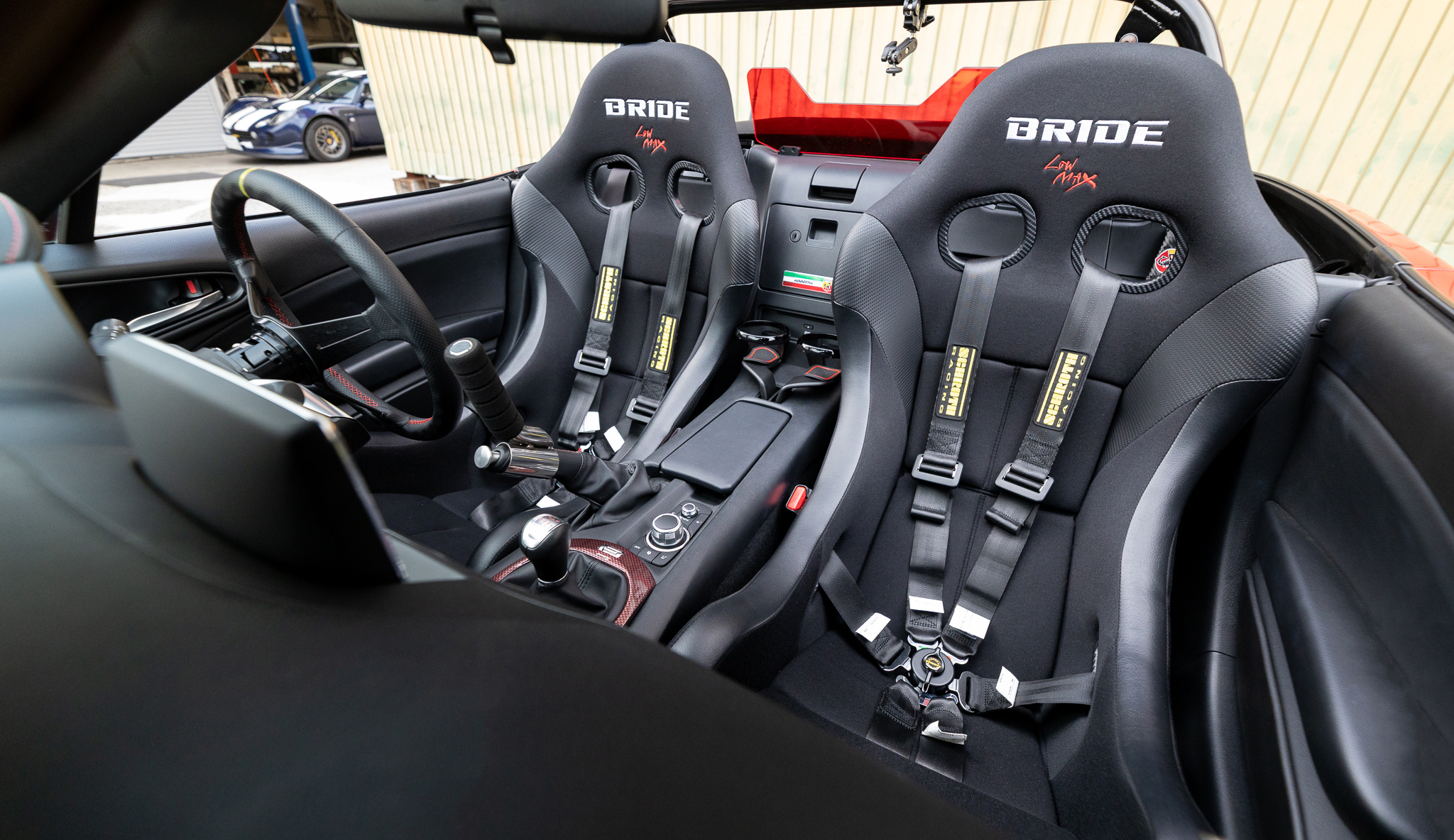サイドターンズのジムカーナ部活動の為に現役選手たちの協力を得て開発&用意した全て。の部品を組み込んだフルスペック仕様です。更にこちらの個体はレイズ製鍛造CE28ホイールや運転席同様に助手席もZETA Ⅳとシュロスの6点ハーネスを装備するなど豪華仕様となっています。サイドターンズ用に専用開発したコサリックONE車高調や専用セッティングのLSDなどはジムカーナに限らず鈴鹿、FSW、ヒルクライムなど幅広く楽しく走行していただけるはずです。(周回走行の場合にはブレーキパッドをサーキット用に交換する必要あり)