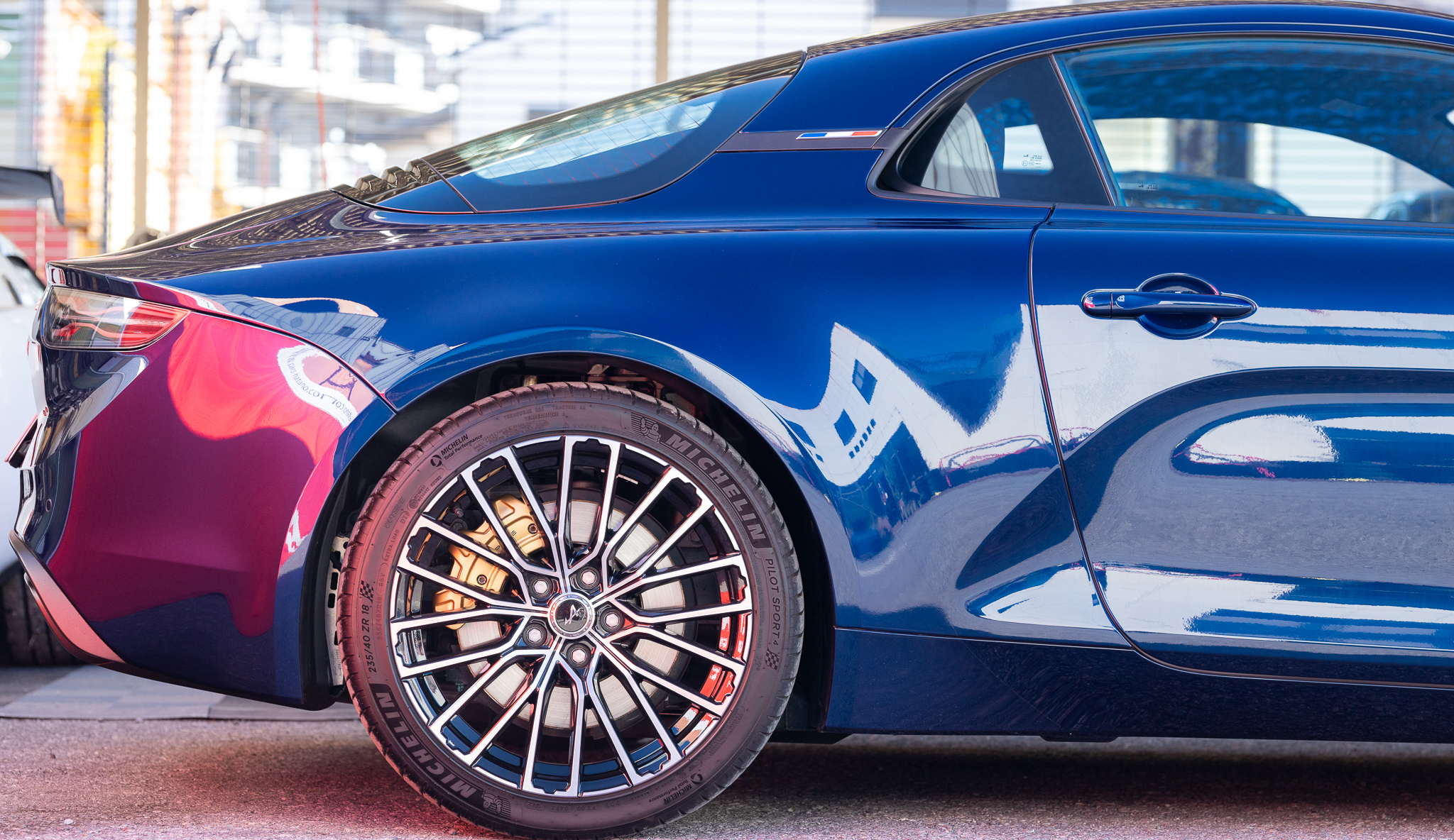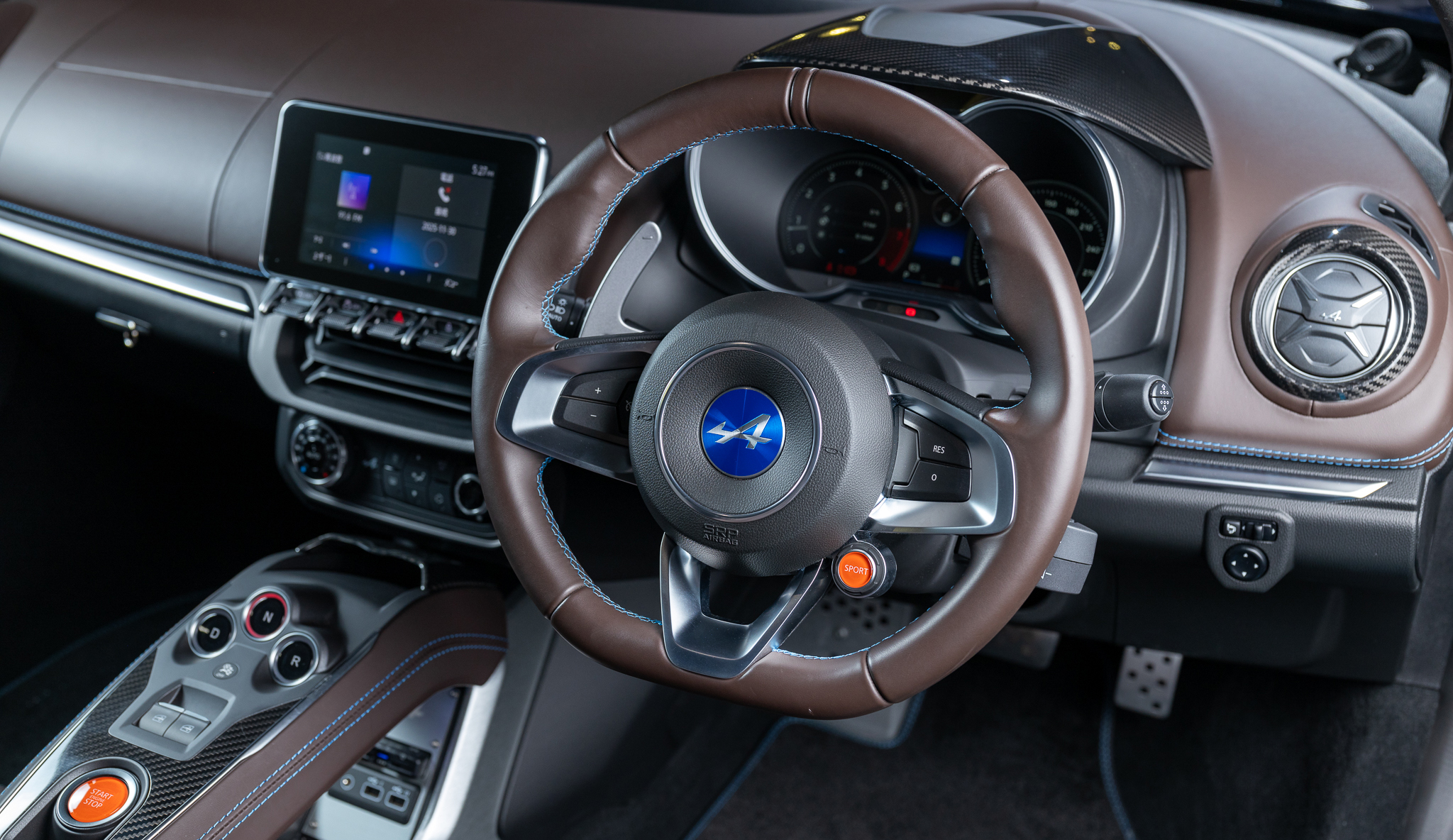 ブルーアビスに切削面をアピールしたGRAND PRIXホイールの隙間から見えるシャンパンカラーのブレーキキャリパー差し色。アルピーヌが持つエレガンスを全面から感じさせてくれるGTの入庫です。GTは グランドツーリングを意識したリネージ仕立てに"S"の300psエンジンを乗せ誕生。Sではロールが抑えられすぎてると感じられる方や、日常での快適性を担保する意味で最も魅力的なバランスで仕立てられています。 現行型から新たに採用されたアルピーヌマルチメディアシステムは遂にApple CarPlayやAndroid Auto対応となり、ユーザーフレンドリーさに磨きがかかっています。