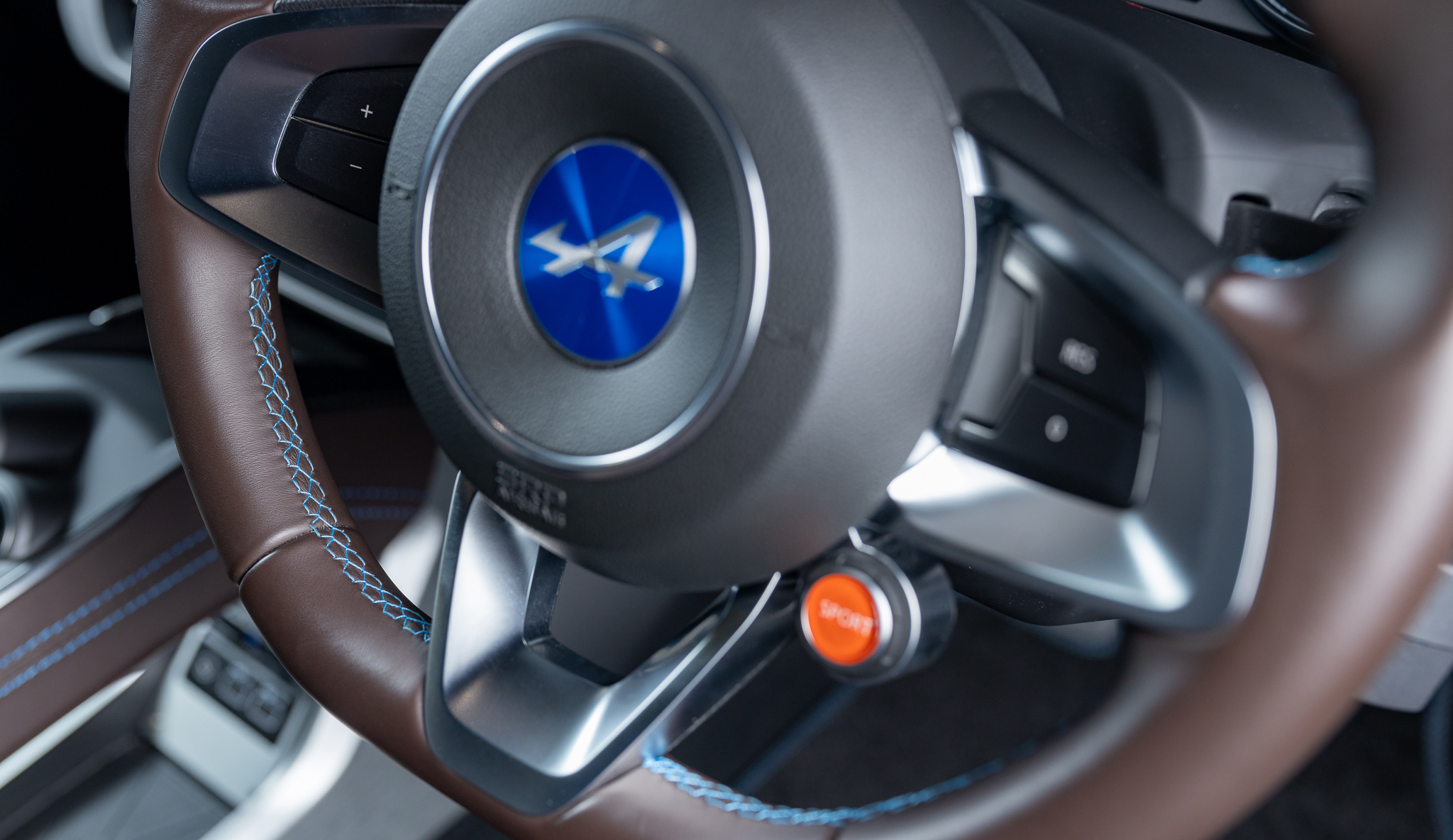 アルピーヌのアイコンである四灯ヘッドライト含め、現代的にリフレッシュされてはいるもののオリジナルのエッセンスが散りばめられたデザイン。