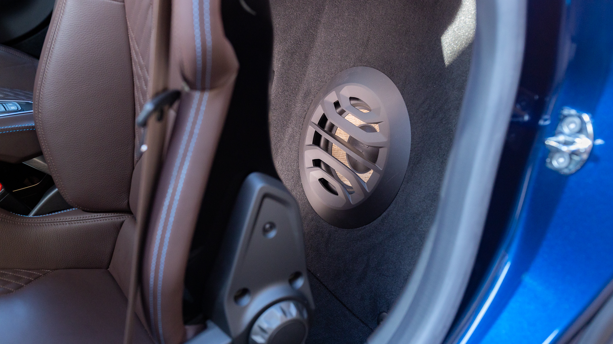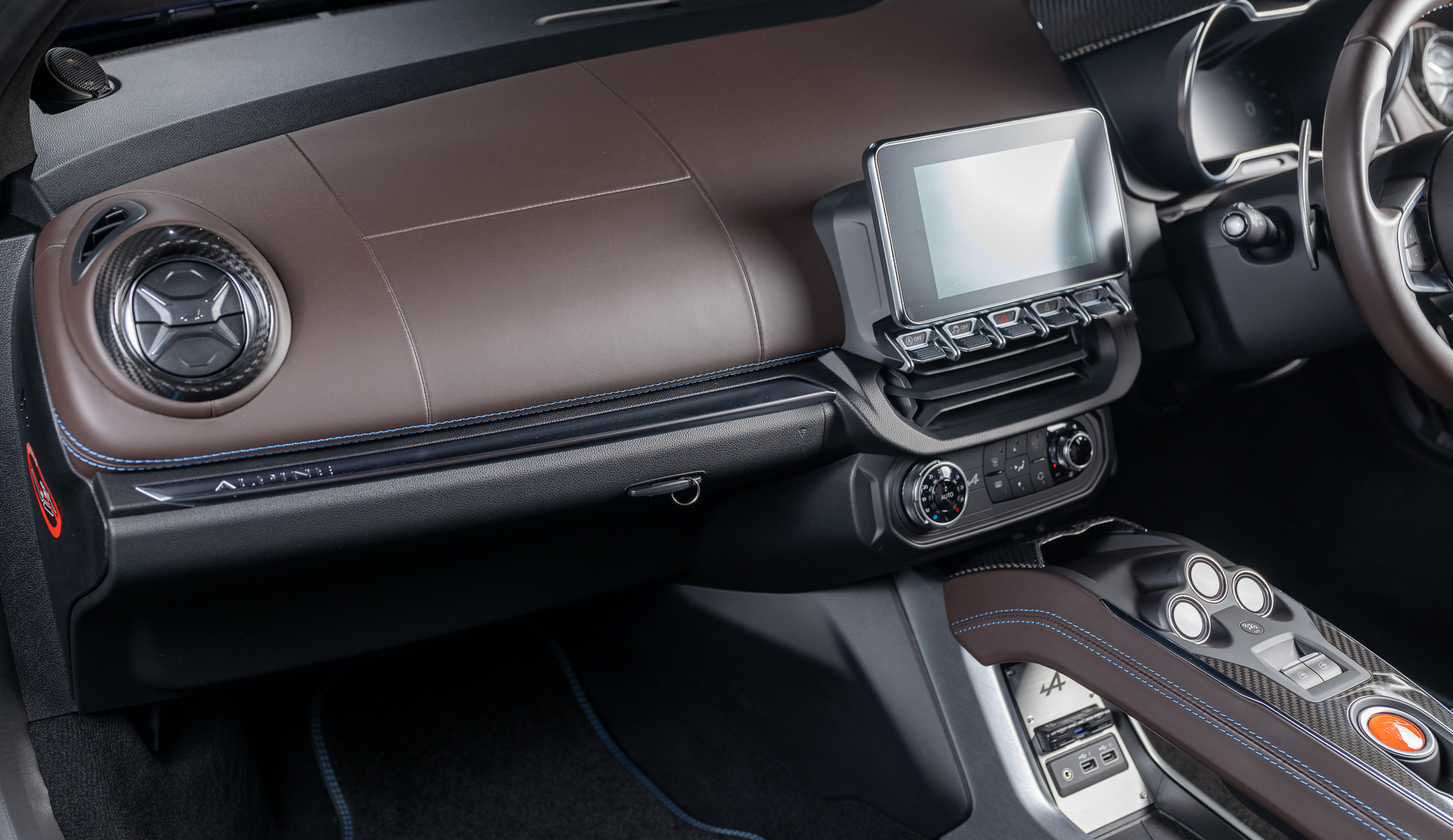 天然皮革のキルティング、随所に設けられたカーボンファイバー、フランス産の麻を用いたスピーカーコーンなど同乗者にも伝わるフランスらしい演出が散りばめられています。センターコンソールはフォローティング式となっています。走行モードに合わせて表示デザインが切り替わるフル液晶メーターパネルなど近代的な要素に加え、全ての造形に意図が持たされておりどのパーツも大切に接したくなります。