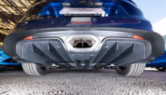 わずか0.32という空気抵抗係数。フロントに設けられたインテークは流速を高めた空気をフロントタイヤに当てる事で負圧を作り、アンダーパネルの効果を高める為の機能が持たされており、フラットアンダーボディが発生するダウンフォース値:190kg(250km/h時)リアディフューザーが発生するダウンフォース値:85kg(250km/h時)という桁違いの空力性能です。