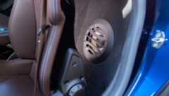 トリコロールのワンポイントとは別に天然皮革のキルティングが施されたアームクッションや、麻を使用したスピーカーコーン紙など細かやかな部分にまでフランス車であることをきちんと伝えようとされています。