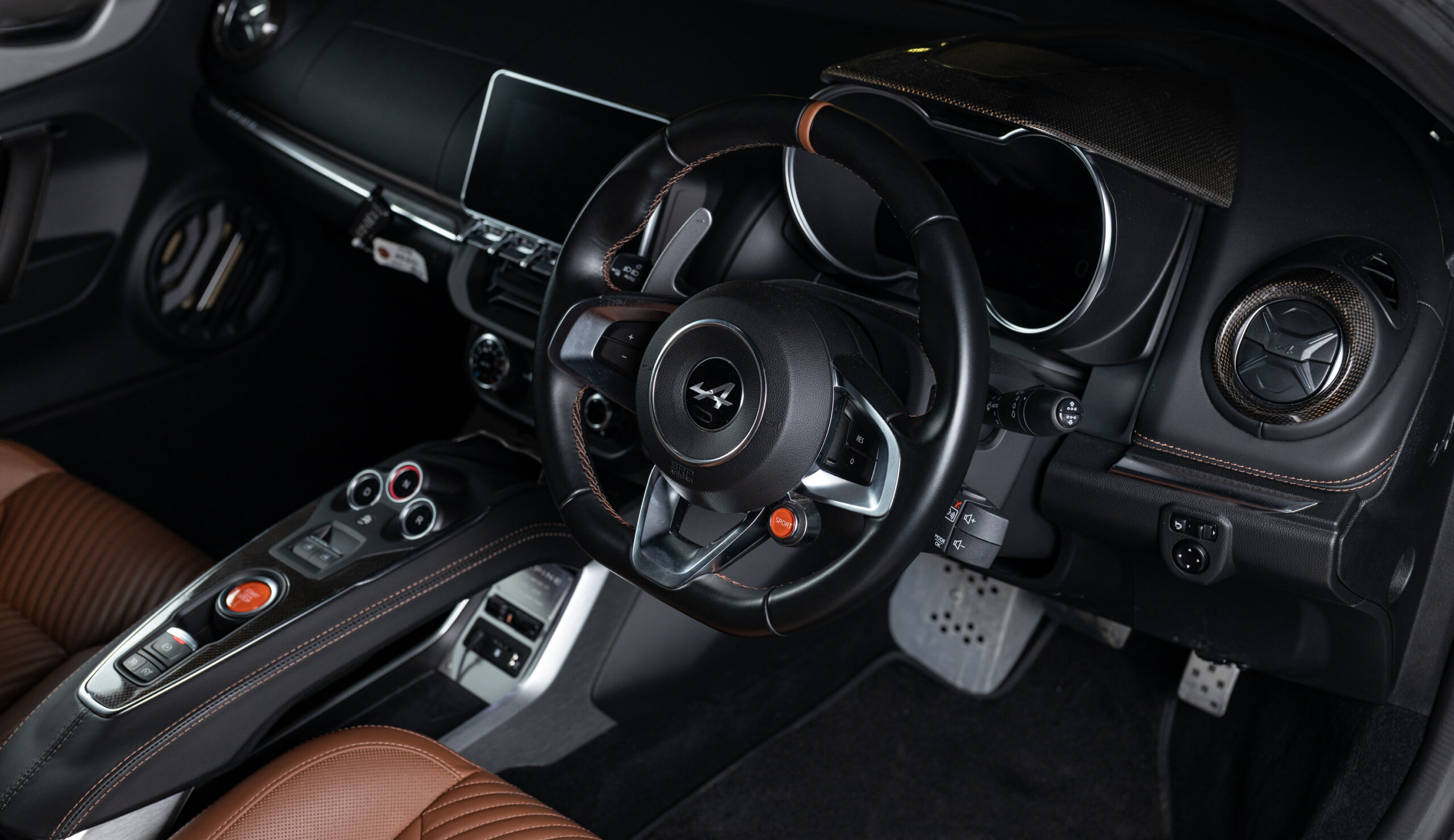 日本割当30台限定"リネージGT"の入庫です。アルジャン メルキュールMにSERACホイールやペールゴールドのロゴエンブレムを掛け合わせるだけでなく、クリアタイプのLEDテールレンズを用いるなどメーカーならではの360度カラーコーディネート。ドアを開ければ明るく上品な印象を与えるアンバーブラウンレザーのリクライニングシートでグランドツーリングまで対応します。他のグレードにない世界観に仕立てられた1台。こちらの個体にはディーラーオプションのナビがインストールされています。