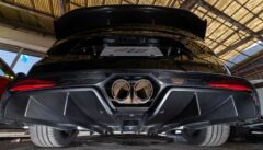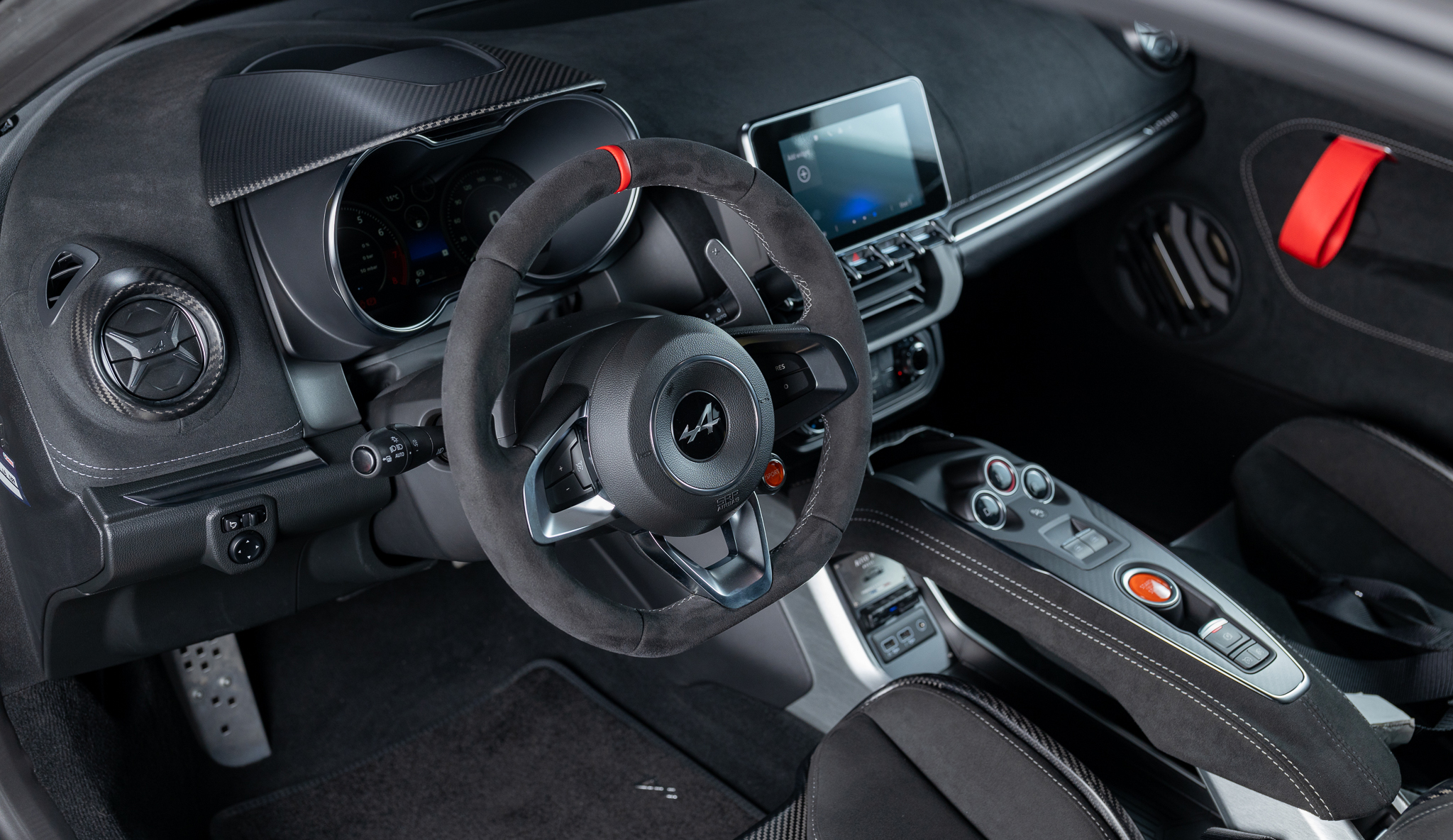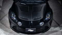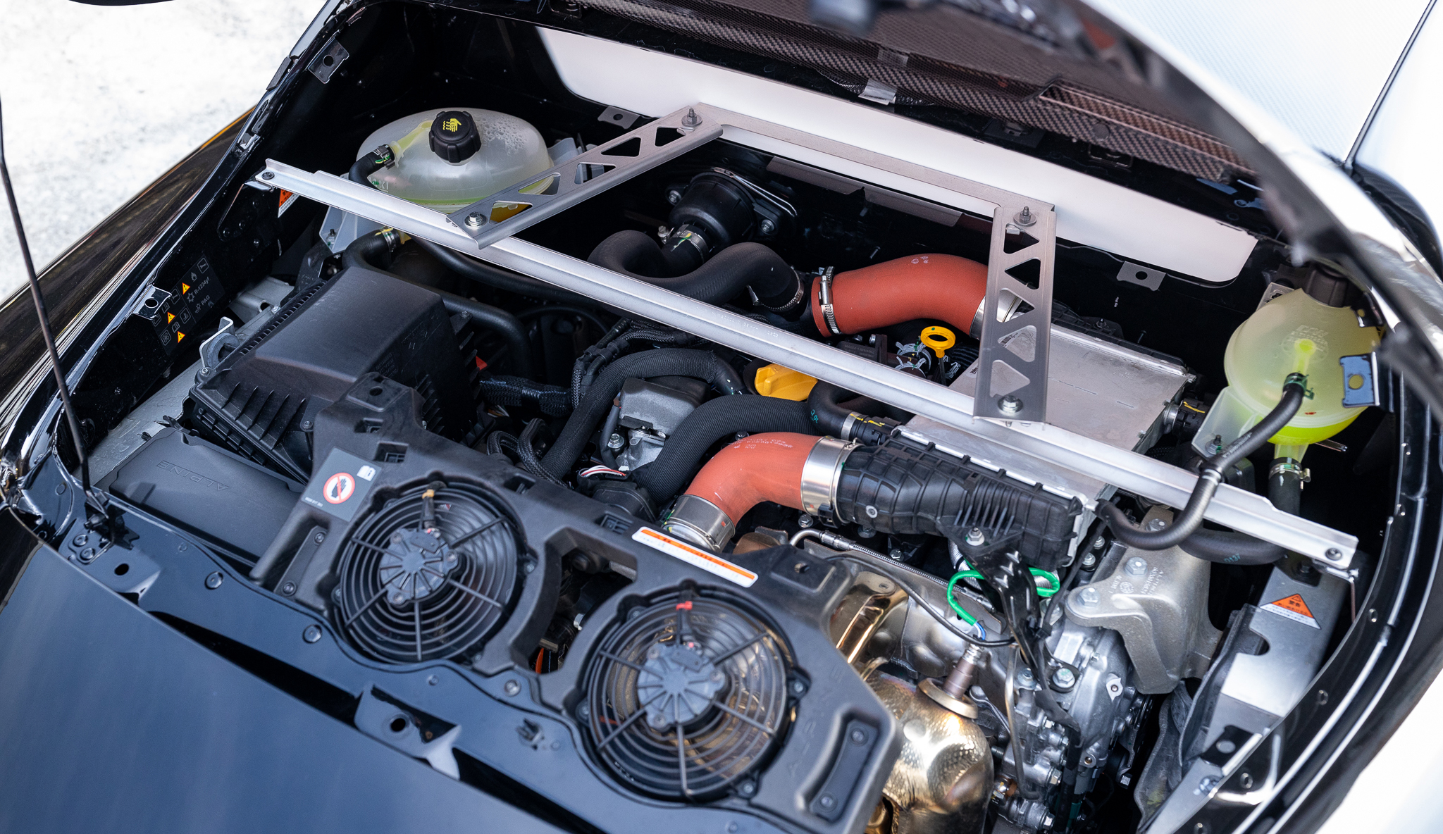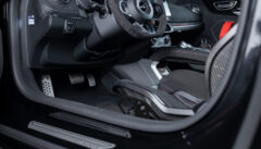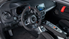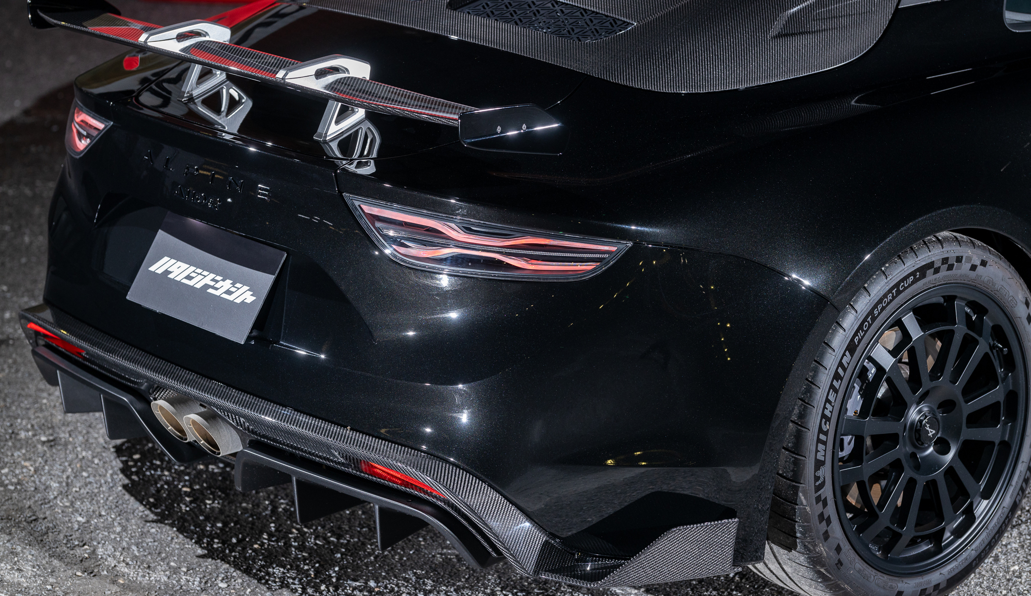 カタログにある「路面に吸い付くような走りを実現するため」に従来の油圧バンプストッパーと決別し、新たにZF製アジャスタブルレーシングダンパーを採用。物理的により多くのストロークが確保されており、なんとリアダンパーには別タンク式が採用されています。加えてエアロダイナミクス全体(リアディフューザー、スワンネックマウントリアスポイラー、サイドスカートなど)が見直されました。その結果、A110 Sエアロキットに比べて最大29kgのダウンフォース増と5%の空気抵抗低減を実現し、サーキット走行では284km/hに到達。こちらの個体には純正鍛造より-2.4kgも軽量なsifo製鍛造ホイールが奢られています。