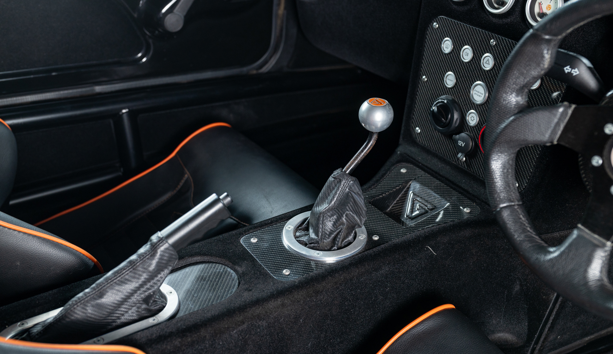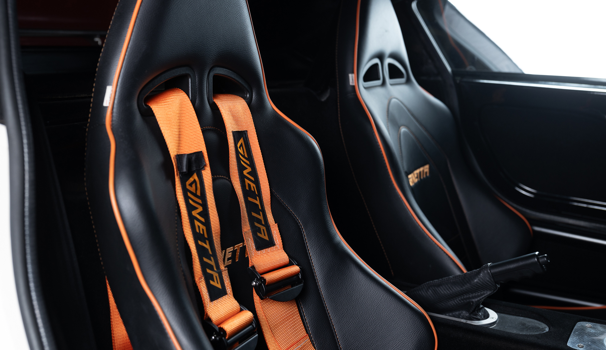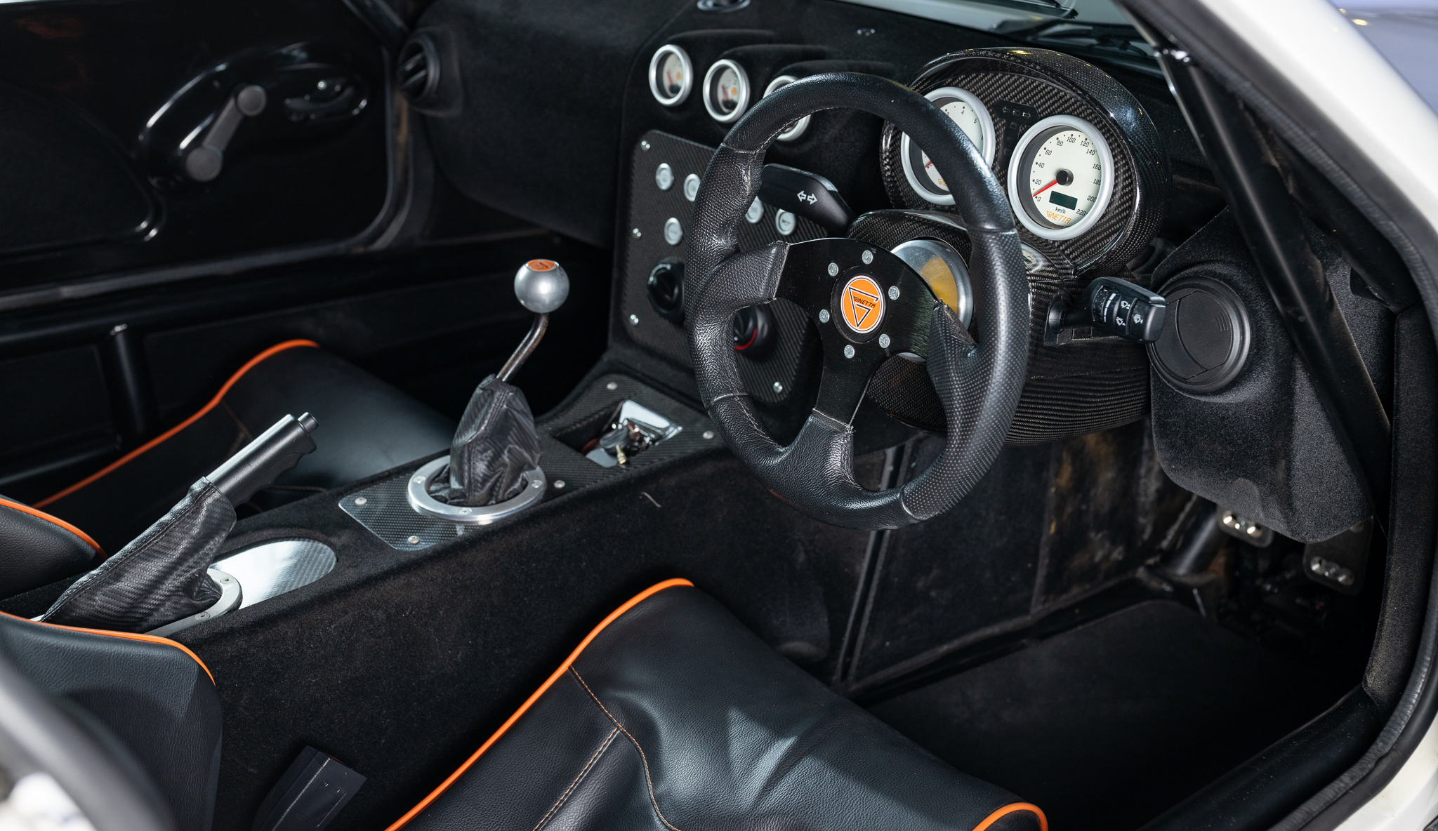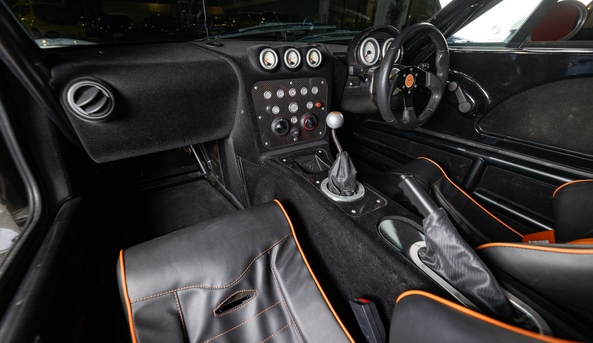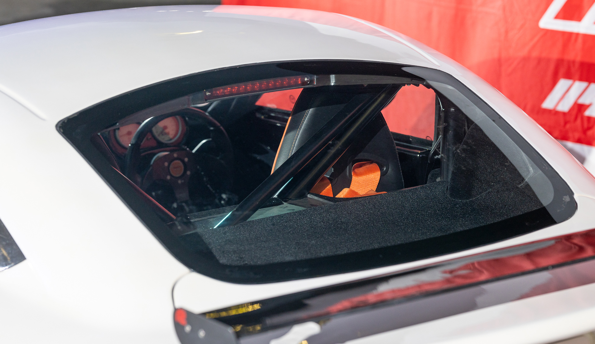 FIA規格のフルケージはAピラーの視界を遮ることなく、非常に綺麗にインテリアの一部となっています。スライド式シートが左右ともに採用されています。
