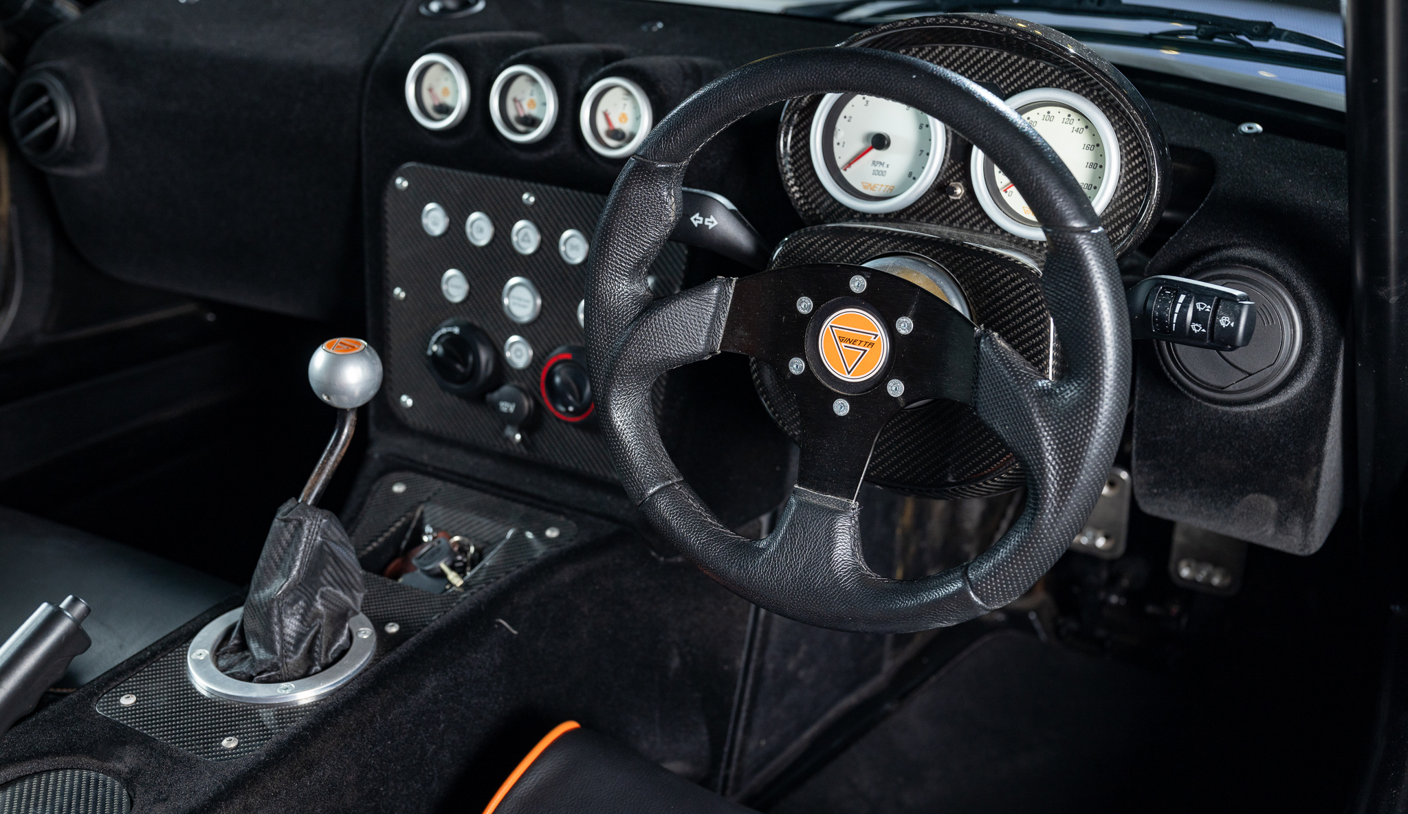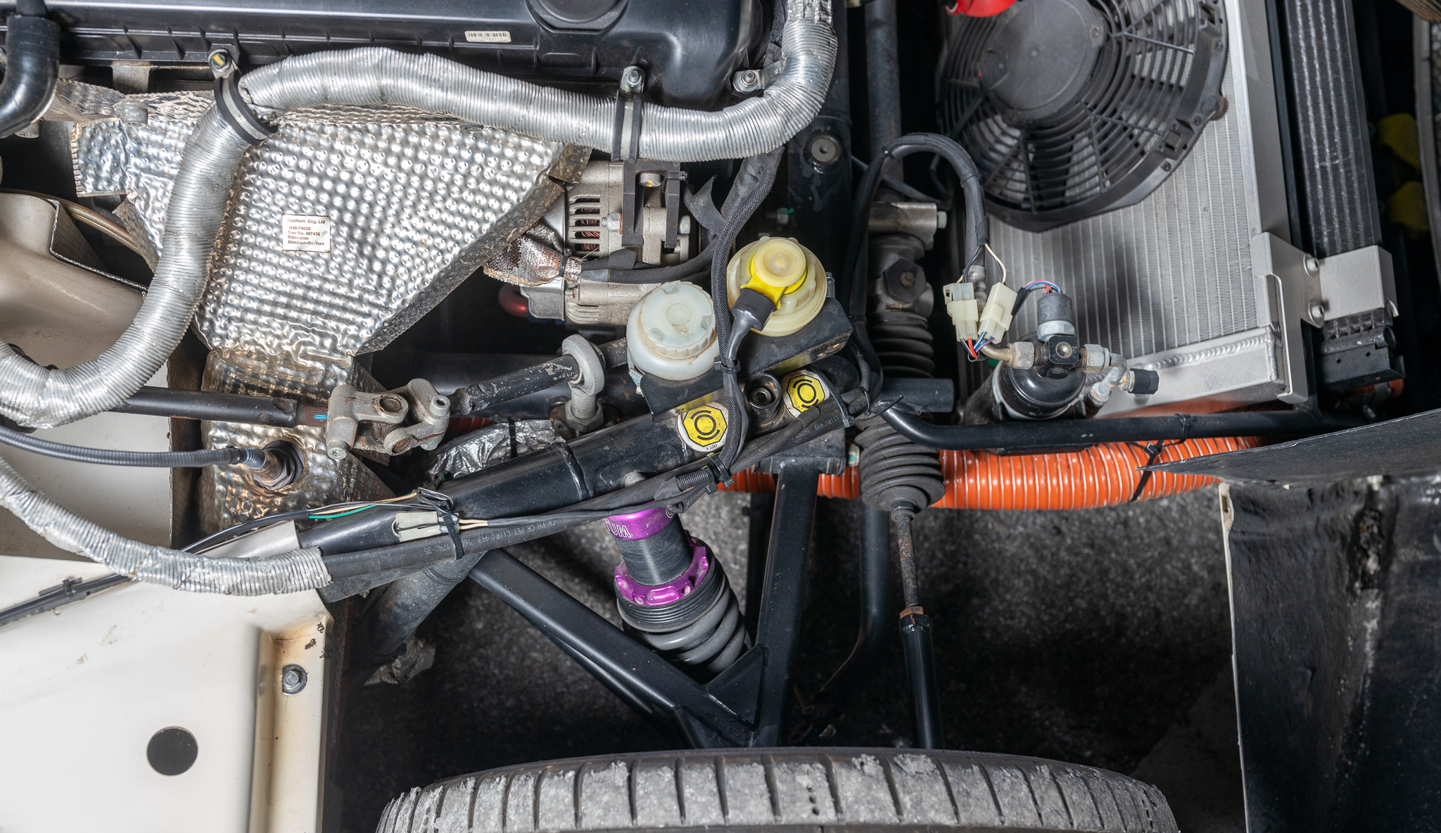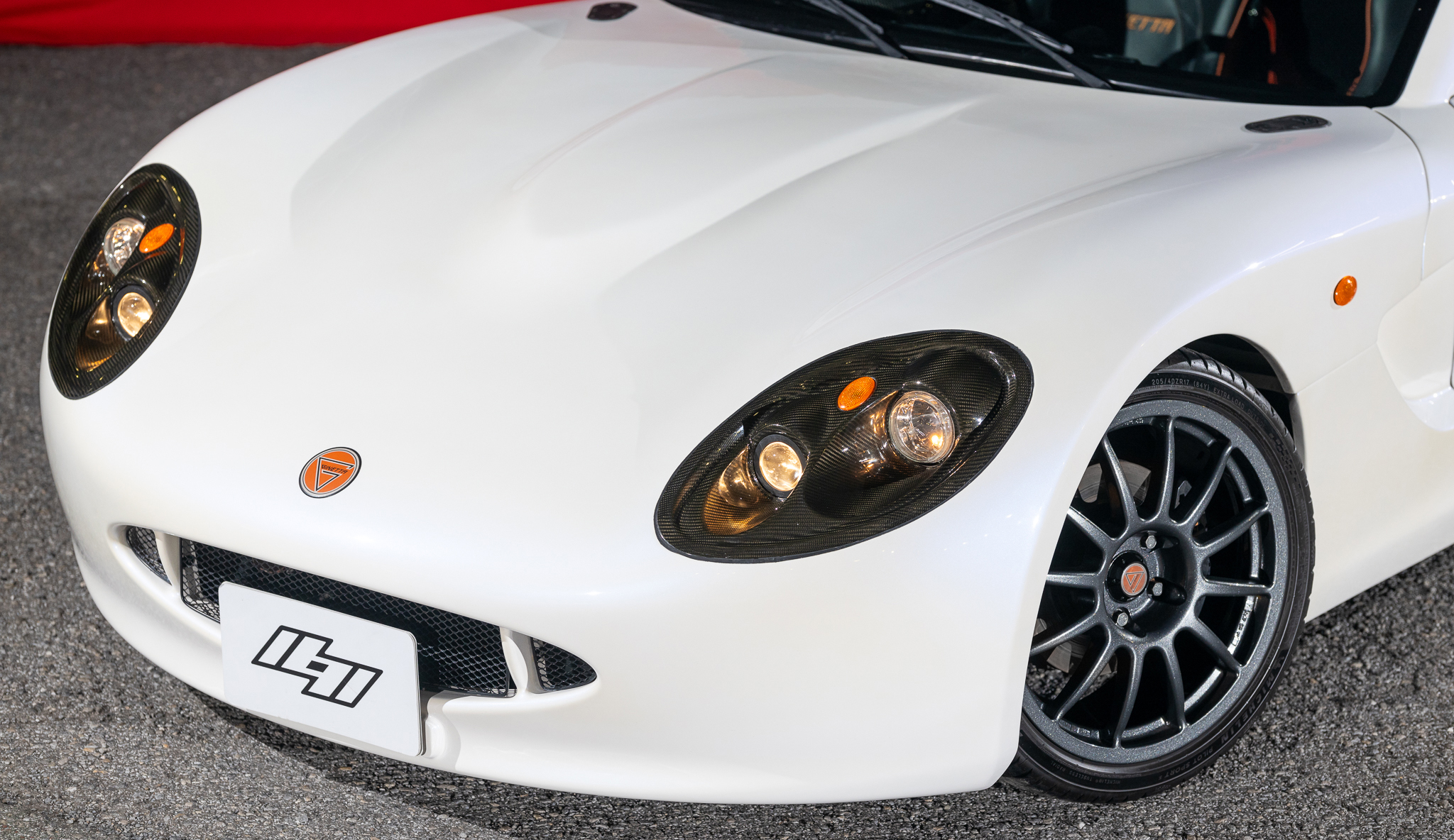 ワンメイクレース用に開発されたG40のロードリーガルバージョンであるG40Rの入庫です。純正そのままでは扱い難い点を丁寧にアップデート。ワイドバンドセンサーを用いて燃調も取り直し、より深く楽しんでいただける個体に仕立てております。何より、エアコンが機能し涼むことが可能なイギリスライトウェイトスポーツ。伝統的な製法であるチューブラーフレームに自然吸気のDOHCエンジンを縦置き。そこにファイバーボディを架装。FIA規格のセーフティロールケージ(サイドビームは太いチューブが2本並走している)を丁寧にインテリアに組み込んであり、内装の作り込みも手作りとしてはかなりしっかり作り込まれており、内と外を感覚的に認知していただけるクォリティになっています。それでいながらドライで795kgという圧倒的な軽さを維持。純正ショックがスリックタイヤを前提としたレートでしたので、クワンタム製の車高調整アブソーバーキットで再セットアップさせて頂きました。