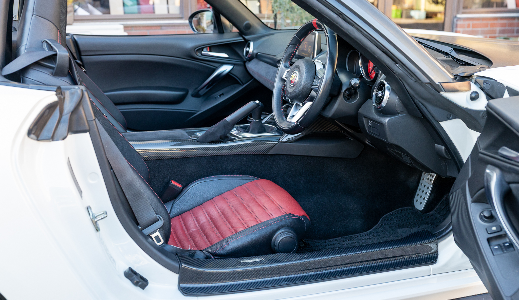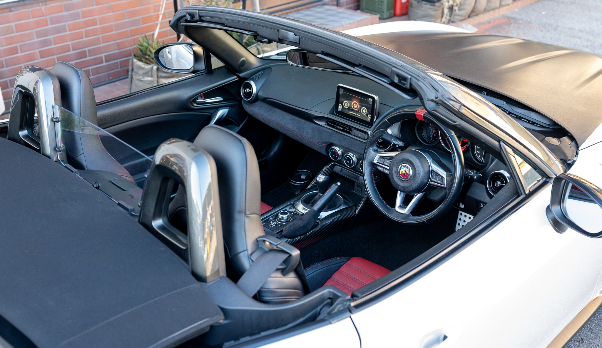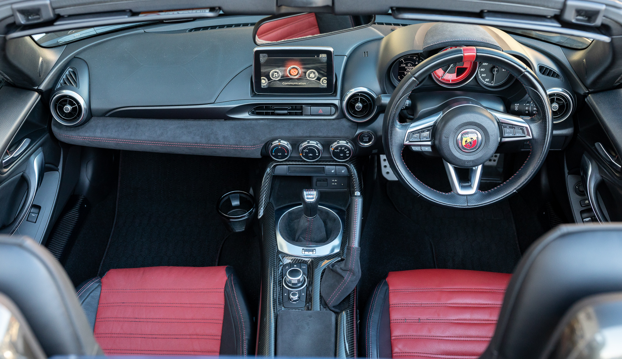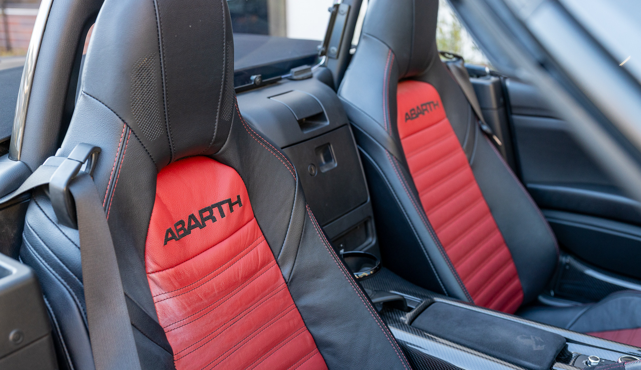 アバルトらしいレッド×ブラックのコンビシート。
