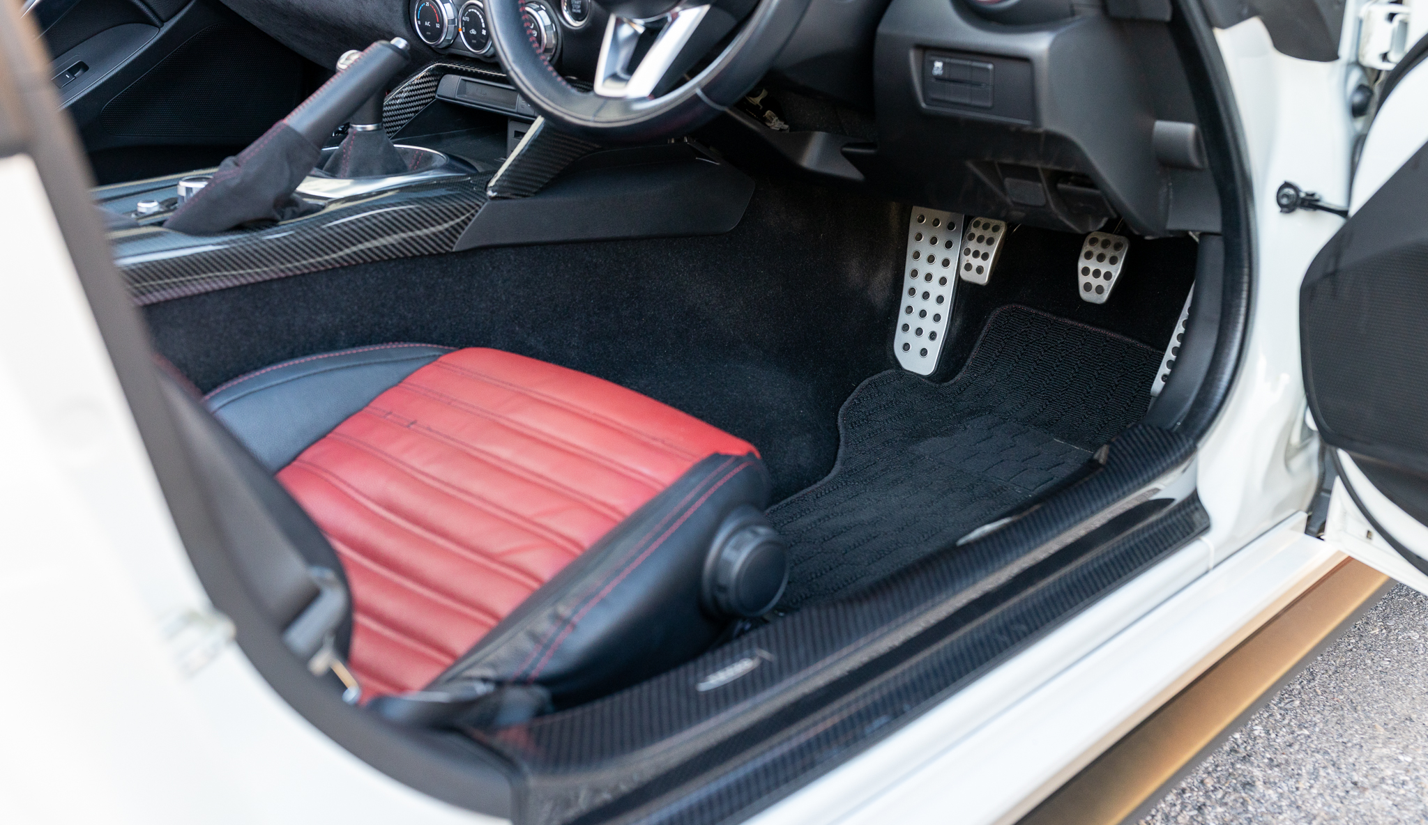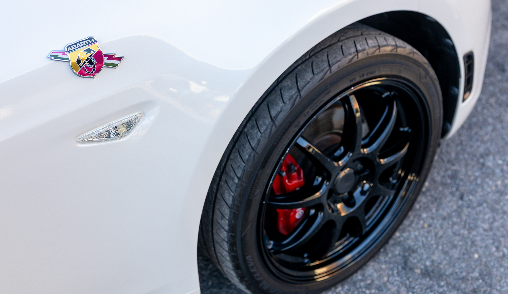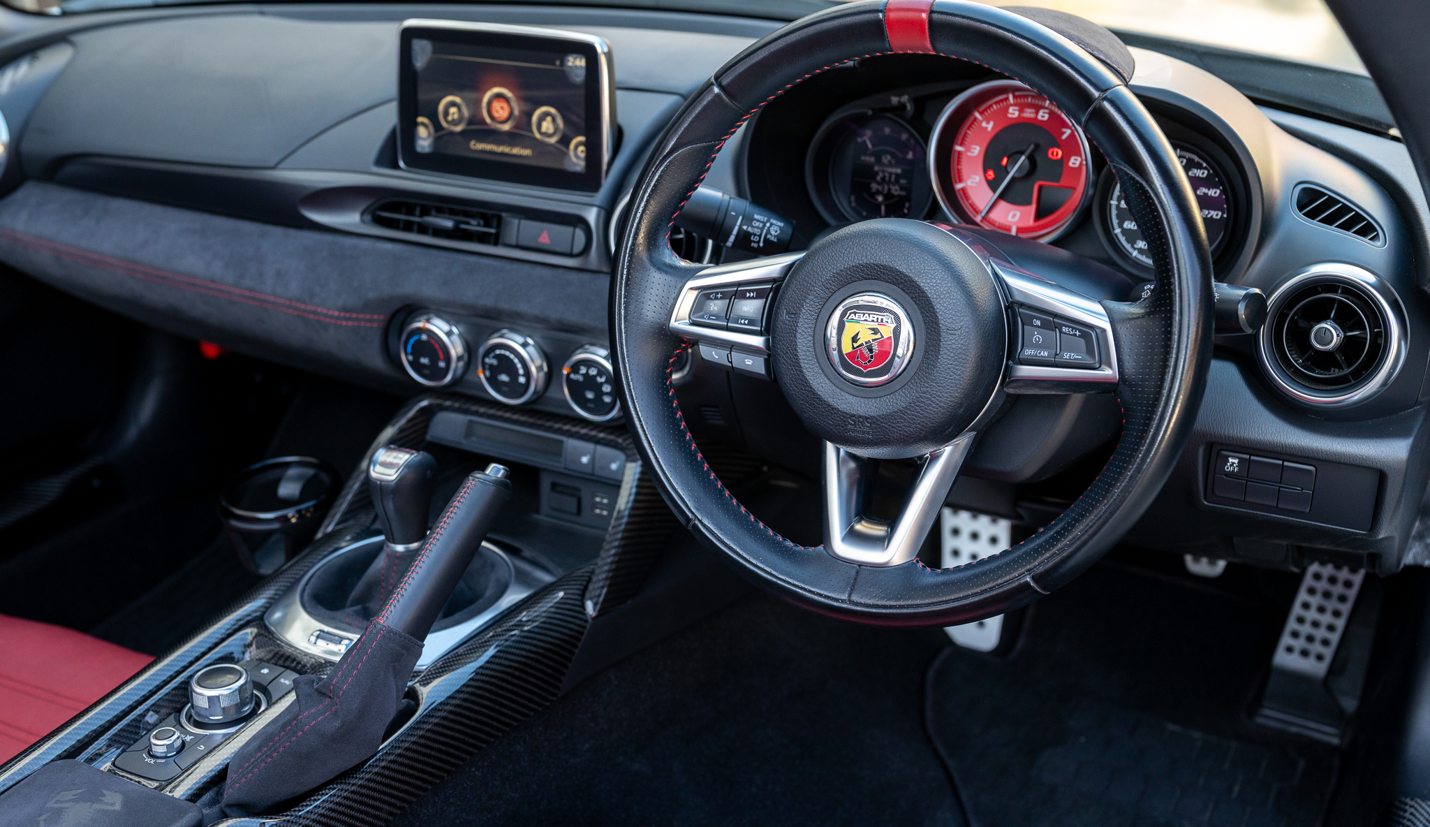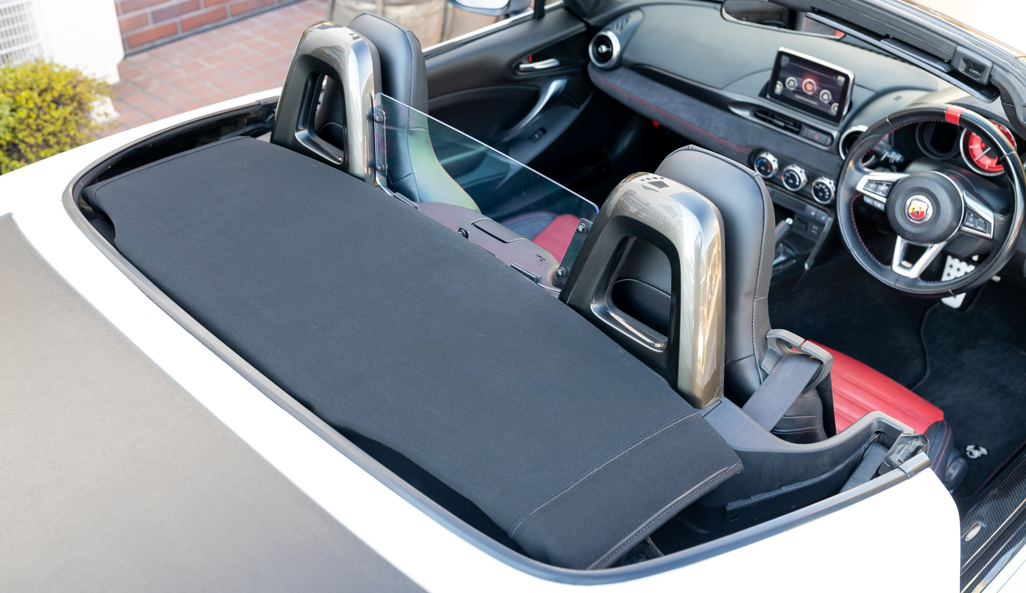 アバルトらしいレッド×ブラックのコンビシート。